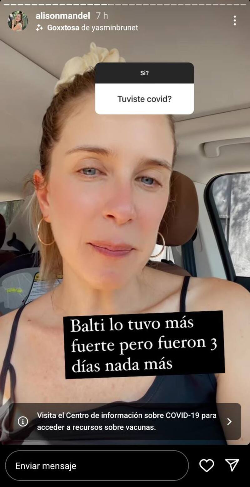 “Fue el único momento que agradecí no haber destetado porque se pegó todo el día. Tuvimos un retroceso con la lactancia igual. Agradecida que nos pilló vacunados y nos pilló esta cepa mega híper contagiosa, pero que es más livianita. Agradecer que ya lo pasamos, tuve miedo por el Balti, pero la verdad nos pilló con él grande”, detalló Alison Mandel.