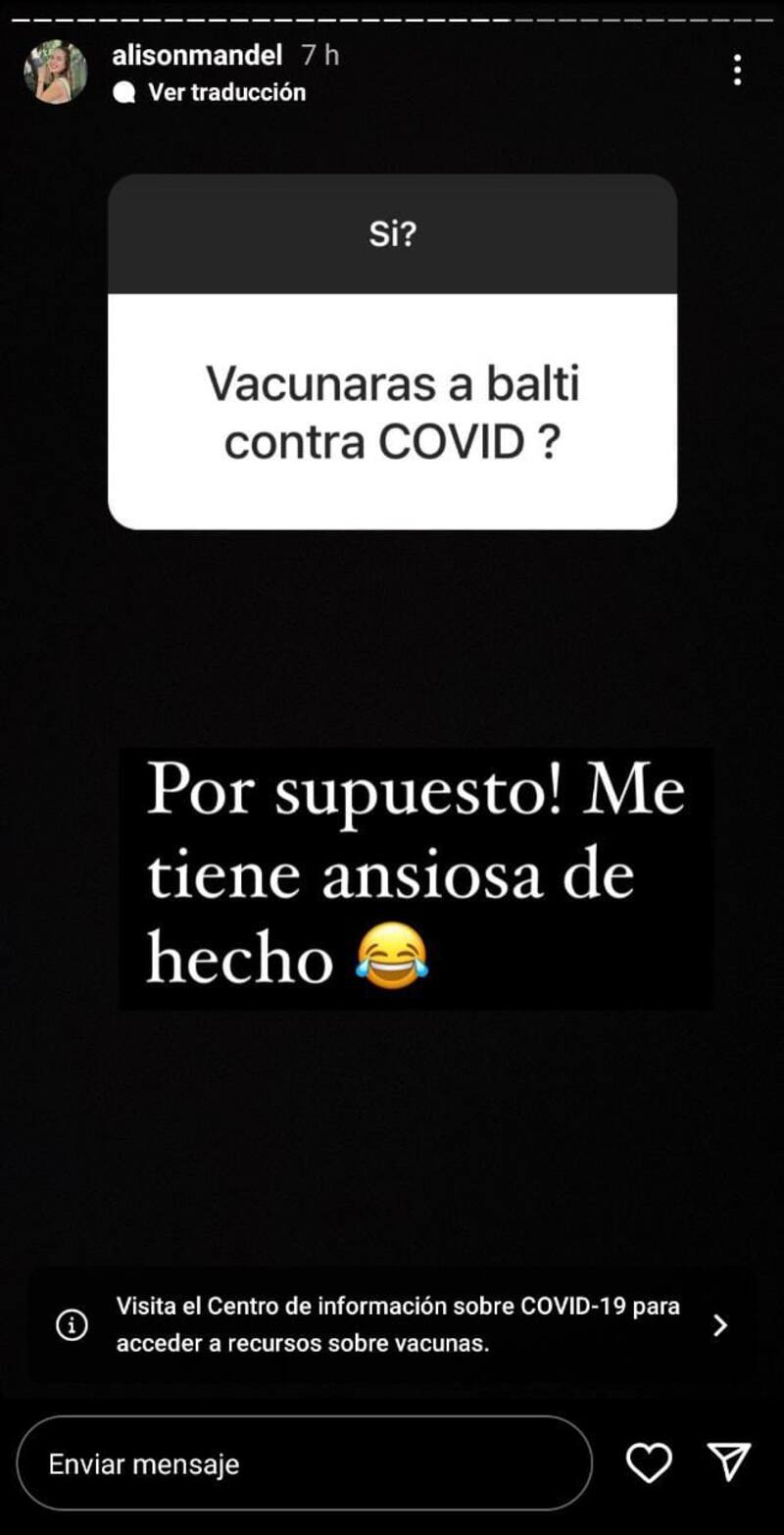 “Sí, tuve covid. La verdad no me pasó nada. Yo estoy con las 4 dosis, solo me dio una jaqueca, y nada más. Creo que un día hice couf couf y eso fue todo”, afirmó Mandel.