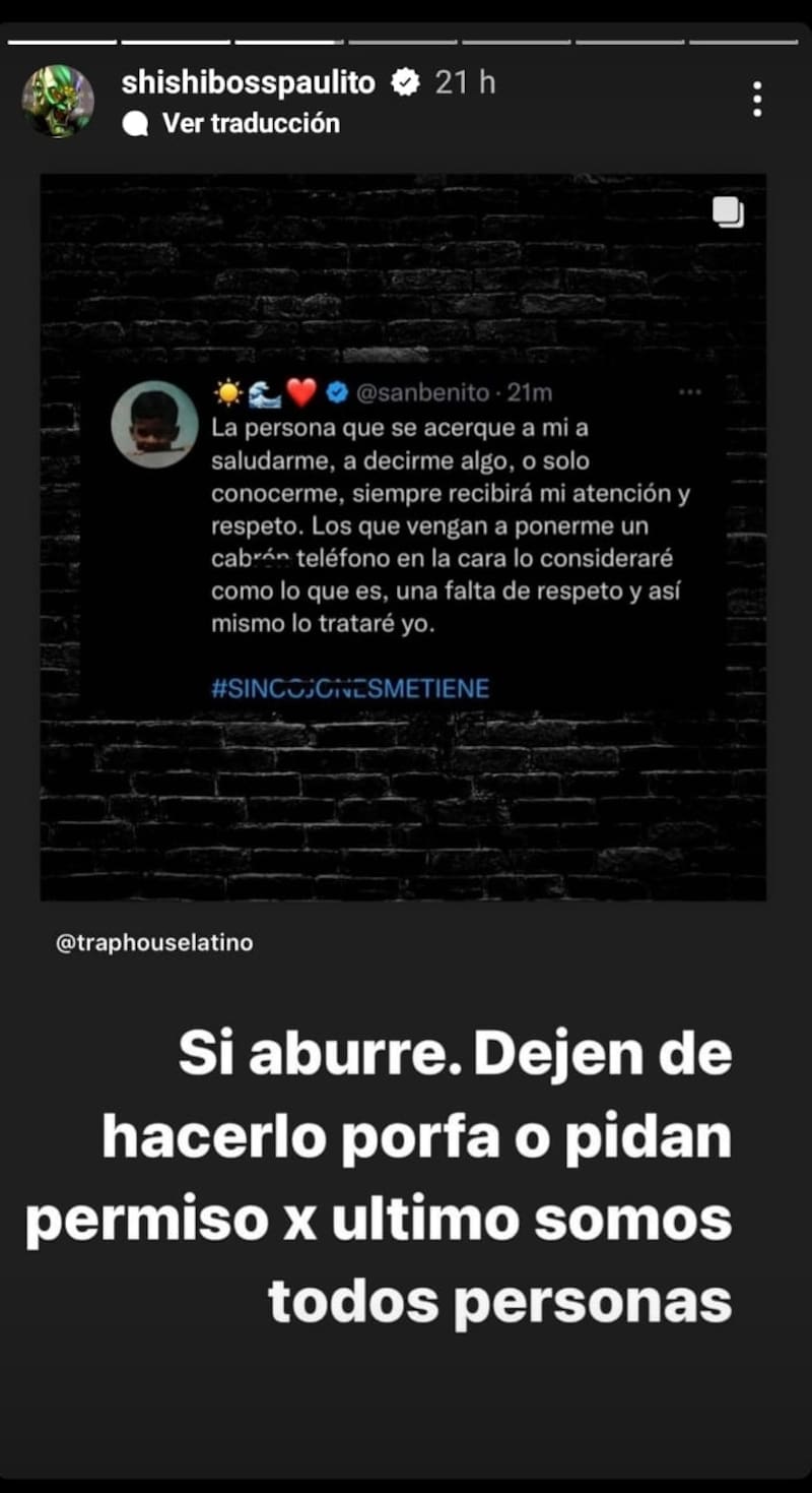 En el mensaje, Benito señaló que “los que vengan a ponerme un cabrón teléfono en la cara lo consideraré como lo que es, una falta de respeto y así mismo lo trataré yo”.