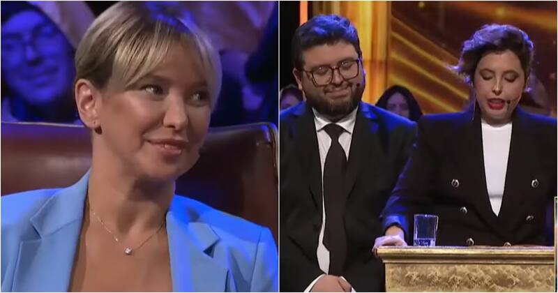 Aguayo fue la encargada de leer las “condolencias”, momento en que recordó el pasó de Schmidt por Morandé con Compañía, su relación con el “Chispa”, Marcelo Salas, entre otras polémicas. Pero la rubia no se quedó callada.