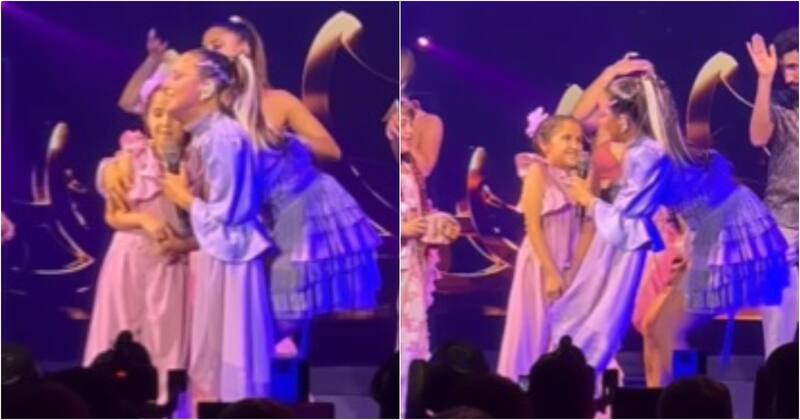 En el registro que subió la cantante se puede ver el sentido momento que vivió con una pequeña fan arriba del escenario.