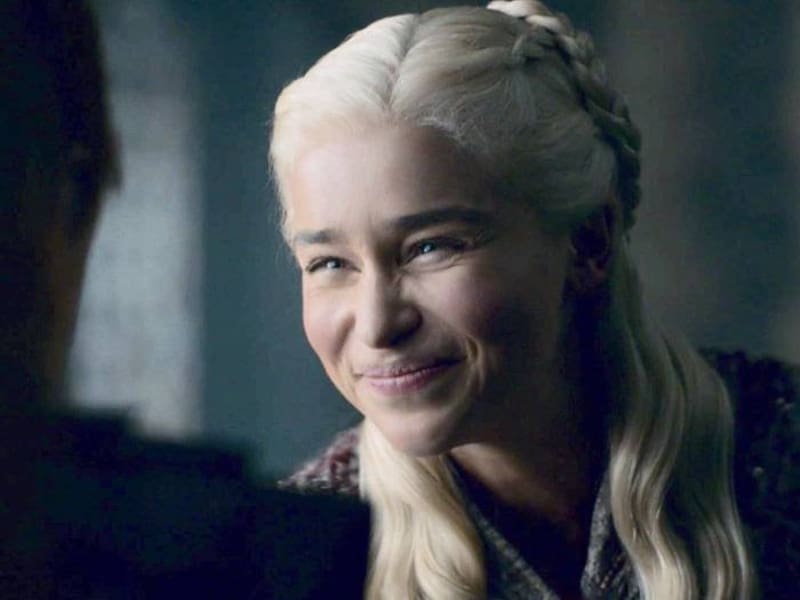 Y es que la sonrisa de la actriz británica Emilia Clarke, quien interpreta a Daenerys Targaryen, no tiene desperdicio. Más que una sonrisa, es una mueca tensa que ejemplifica a la perfección la tensión de la escena.