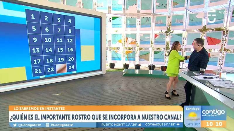 Jugando al misterio en el matinal Contigo en la Mañana, el anuncio de Bolocco incluyó una pantalla dividida en cuadros donde se fue revelando poco a poco el rostro de la “desconocida” nueva contratación. Una dinámica en que también participaron los televidentes, que jugaban mencionando múltiples nombres.