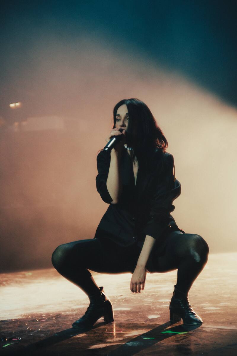 A diferencia de sus venidas en 2015 y 2019, en donde la disposición de los escenarios la ponía sobre una especie de altar inalcanzable, St.Vincent le sacó partido a cada milímetro del plató en el Caupolicán. Saludando de mano a la primera fila, parándose sobre la baranda y mirando directamente a los ojos a los asistentes en cada uno de los sectores, logró una intimidad envidiable para una figura posicionada en lo más alto de la industria. Que solo se haya habilitado dos tercios de su capacidad total funcionó, esta vez, a favor de la experiencia.