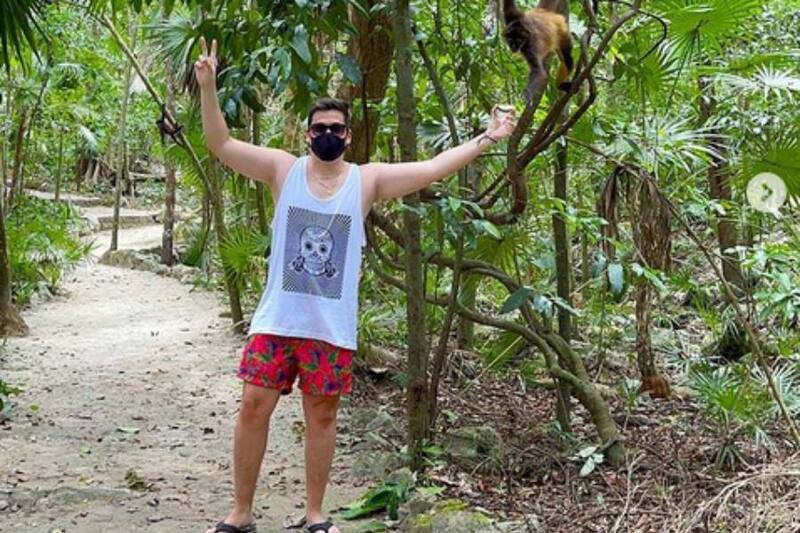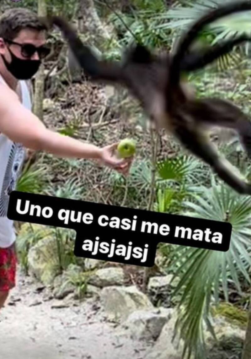 "Uno casi me mata. Un mono me tiró un tronco", bromeó el influencer en sus historias de la red social, donde posteriormente subió varios registros del momento.