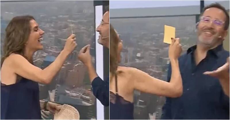 Ante eso, ella, cual árbitro de fútbol, lo amonestó: “¡No!”, lanzó la periodista. “¡Tarjeta amarilla, tarjeta amarilla porque estamos en horario infantil!”.