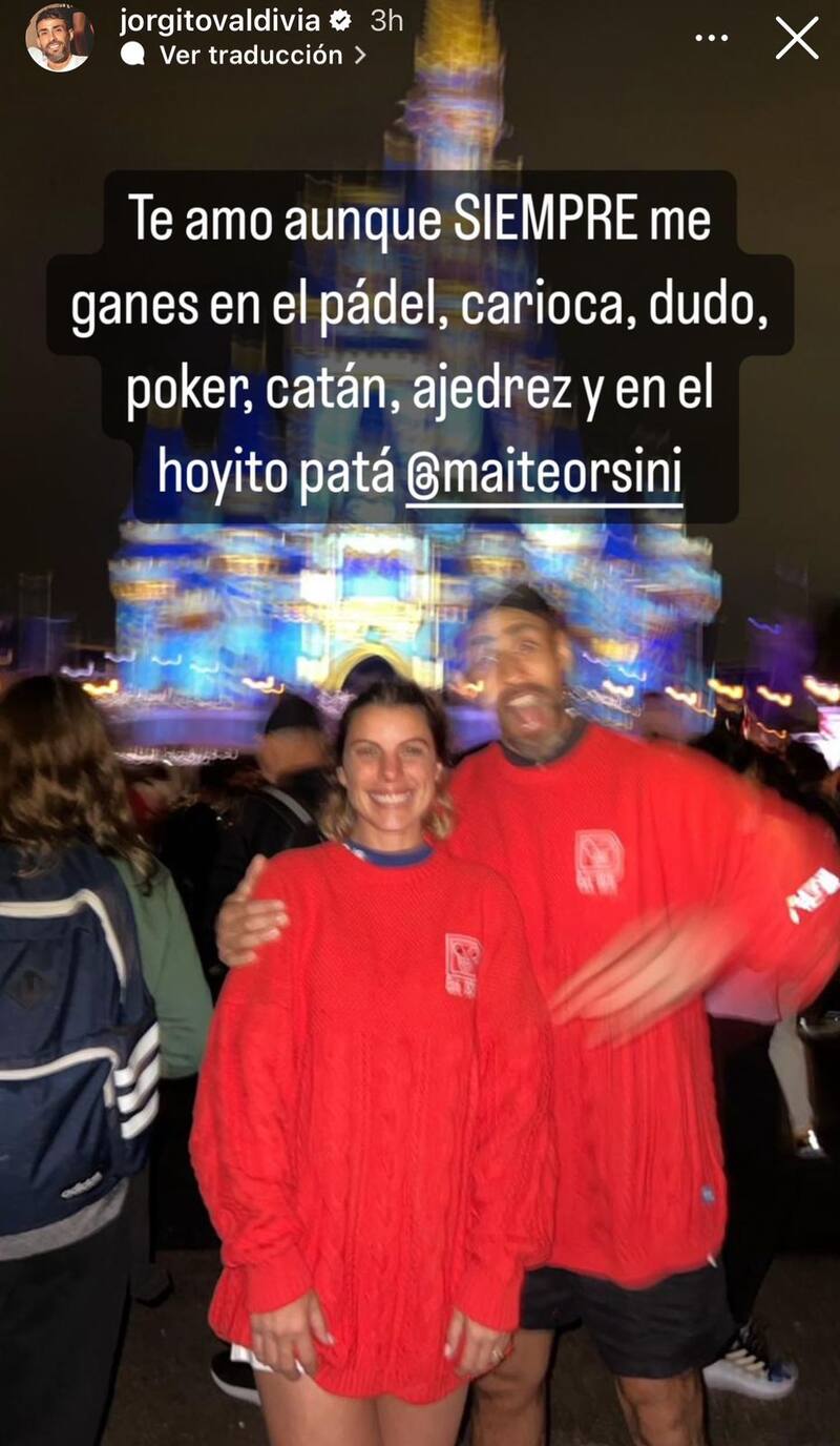 Jorge Valdivia está enamorado hasta las patas y así lo demuestra públicamente cada vez que puede. Claro, pues si bien al principio mantuvo en secreto su romance con Maite Orsini, ahora se liberó y constantemente le grita su amor a los cuatro vientos.
