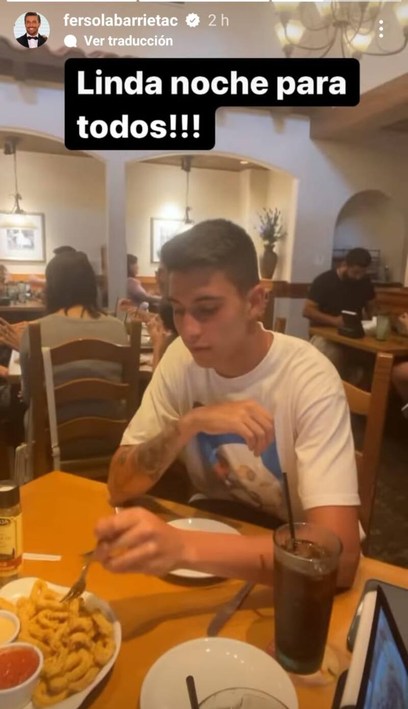 En otro de los registros, se observa al padre e hijo disfrutando de una gran comida en un restaurante de la ciudad, donde se encuentran actualmente.
