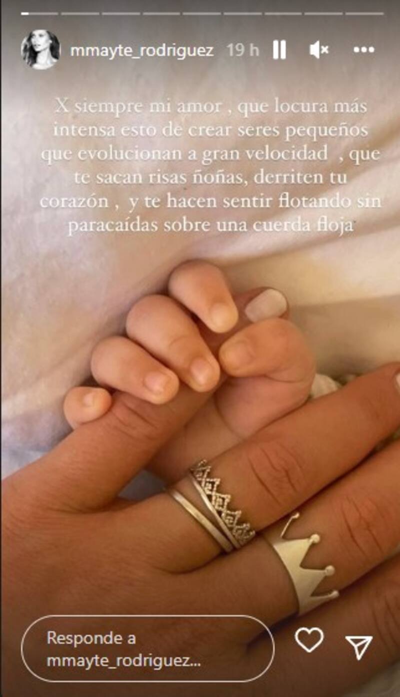“X siempre mi amor, que locura más intensa esto de crear seres pequeños que evolucionan a gran velocidad, que te sacan risas ñoñas, derriten tu corazón y te hacen sentir flotando sin paracaídas sobre una cuerda floja”, detalló Rodríguez llenando de ternura la web.