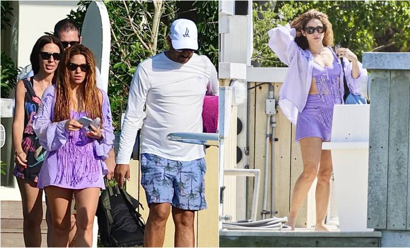 Shakira y Hamilton fueron a navegar junto a un grupo de amigos por Miami Beach (Florida). Llevaban tablas de surf y la artista vestía un traje de baño color lila que ella misma diseñó, y que lució en una publicación que realizó en Instagram en 2020.