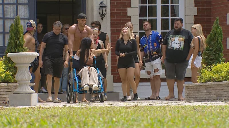 Al bajar del vehículo, la brasileña fue trasladada en silla de ruedas hasta el living, donde entregó detalles sobre su estado de salud tras el doloroso accidente que sufrió en la prueba.
