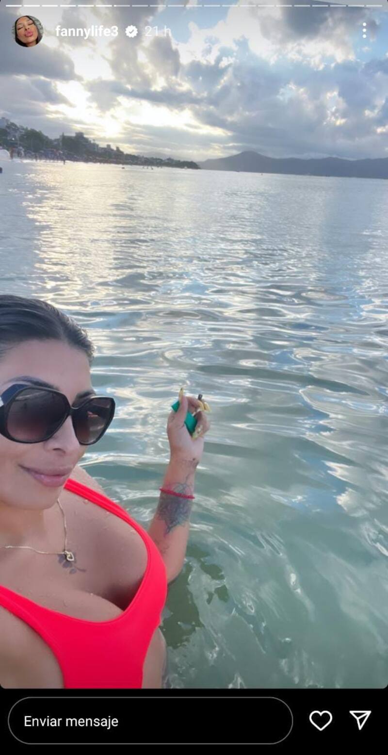 “Terminando el año”, expresó Fanny Cuevas posando sonriente en un bikini rojo. Anteriormente compartió una serie de fotos disfrutando en la playa con un colorido traje de baño verde junto a la frase “Eu amo”.
