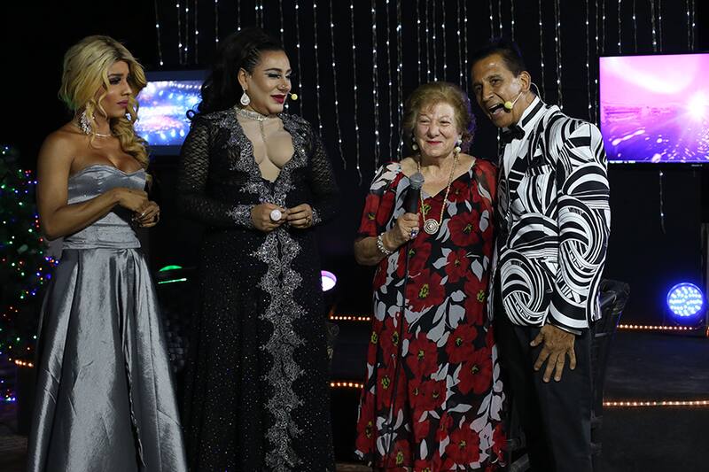 Elegante y puntual como siempre, la tía Yolanda Sultana llegó hasta el Hotel París - Londres, en el centro de Santiago, donde compartió con gente de la comunidad gay en el evento de fin de año del Canal Equinoxio, que cubre todo el acontecer de las comunidades LGTBI+.