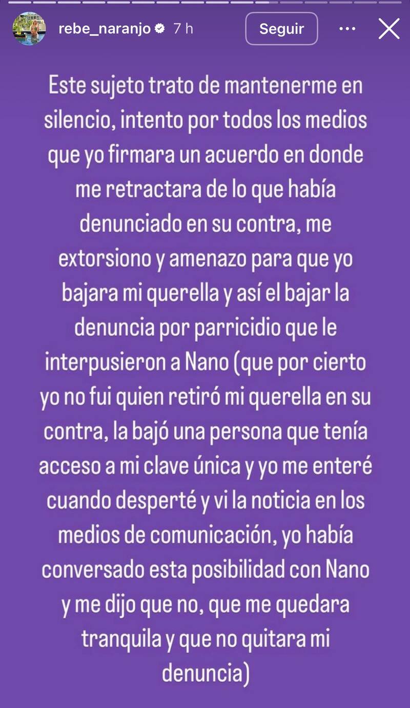 Pero eso no es todo, pues también contó detalles específicos del comportamiento fuera de lugar que habría tenido su suegro cuando junto a Nano estuvieron viviendo juntos en su departamento.