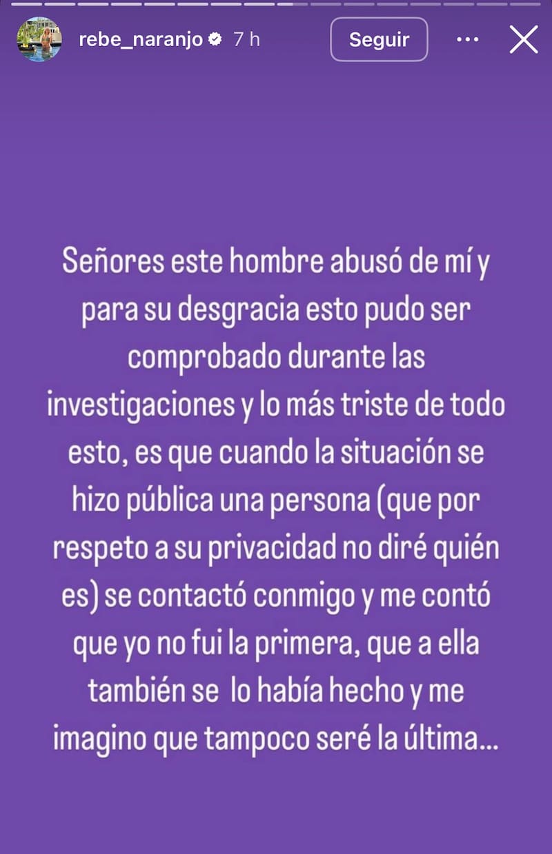 Por último, Naranjo compartió una serie de pantallazos para argumentar su testimonio, y aseguró que Hernán Calderón “abusó de mí y esto pudo ser comprobado durante las investigaciones”. Incluso, contó que cuando esta situación se hizo pública, “una persona se contactó conmigo y me contó que yo no fui la primera, que a ella también se lo había hecho, y me imagino que tampoco seré la última”.