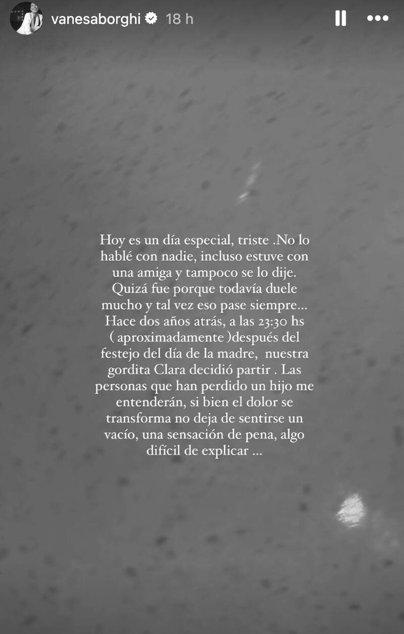 Por Juan Carlos Muñoz“Todavía duele mucho”: la conmovedora publicación de Vane Borghi a dos años de la triste pérdida de su hija