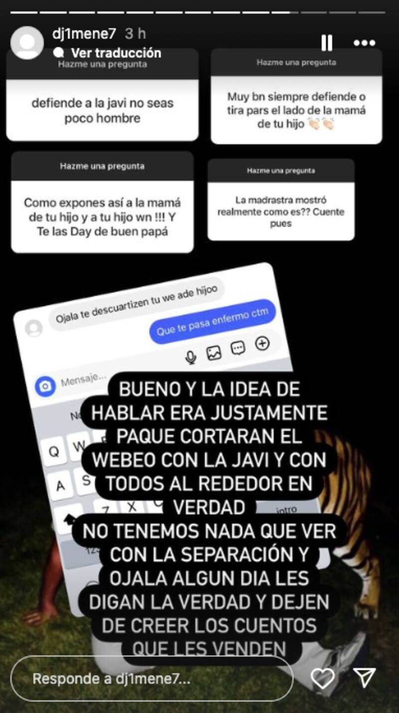 Poco después, Diego subió en sus historias una serie de comentarios en que lo increpaban por no defender a Javiera de los rumores y también por su “madrastra”, es decir, Coté López.