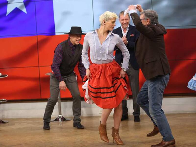 Todo ocurrió cuando los panelistas, animadores, sumados al político Francisco Vidal, el alcalde de Las Condes Joaquín Lavín y el Ministro de Vivienda y Urbanismo, Cristián Monckeberg, ponían atención a las indicaciones acerca de cómo se baila cueca.