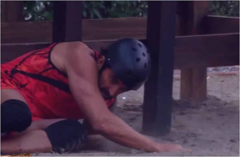 En plena prueba, de pronto, la conductora Karla Constant pidió que detener todo: “Uy, se desequilibra”, relató ella, luego que el participante sufriera una fuerte caída desde una plataforma.