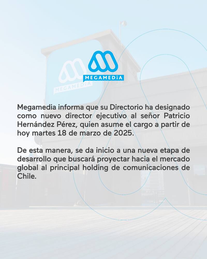 Se trata de Patricio Hernández Pérez, quien según un comunicado de Megamedia, asumirá su cargo a partir de este 18 de marzo.