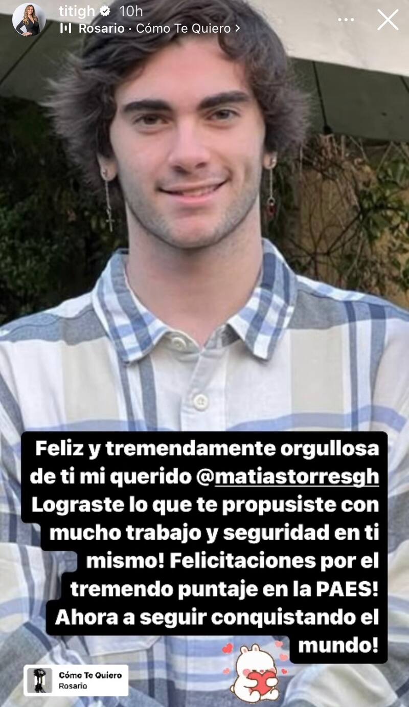 “Feliz y tremendamente orgullosa de ti, mi querido Matías. Lograste lo que te propusiste con mucho trabajo y seguridad en ti mismo”, escribió la también locutora radial.