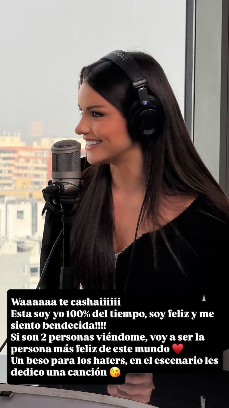 Fiel a su estilo, la ex “Rojo” agregó: “Si son dos personas viéndome, voy a ser la persona más feliz de este mundo. Un beso para los haters, en el escenario les dedico una canción”.