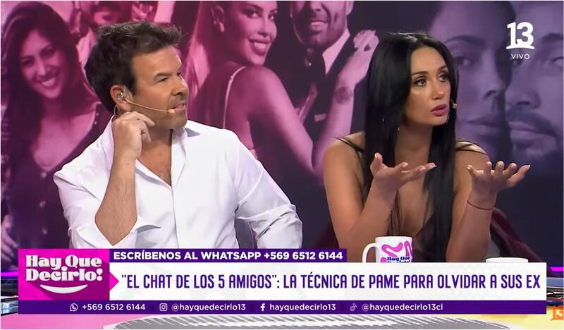 Luego, la conductora del programa se refirió a la técnica que habría entregado en esa ocasión la especialista en salud mental: hablar por chat con cinco “amigos” para lograr superar a la expareja, que con “amigos” se refería más bien a pinches o conocidos que le parecieran atractivos.