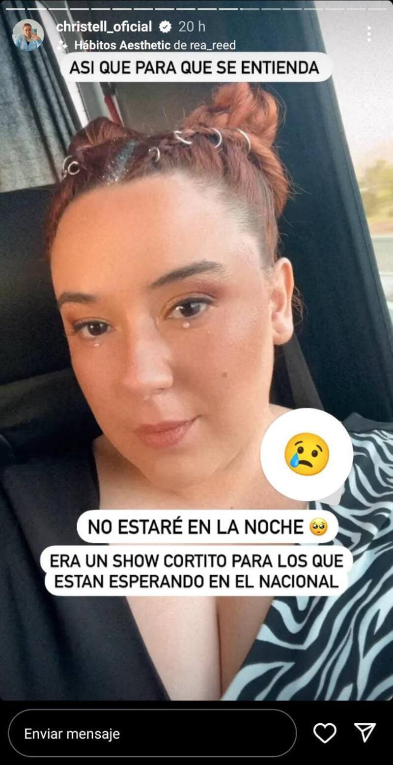 “Para que se entienda, no estaré en la noche. Era un show cortito para los que están esperando en el Nacional”, señaló Christell Rodríguez agradeciendo de todos modos la oportunidad y mirando hacia el futuro.