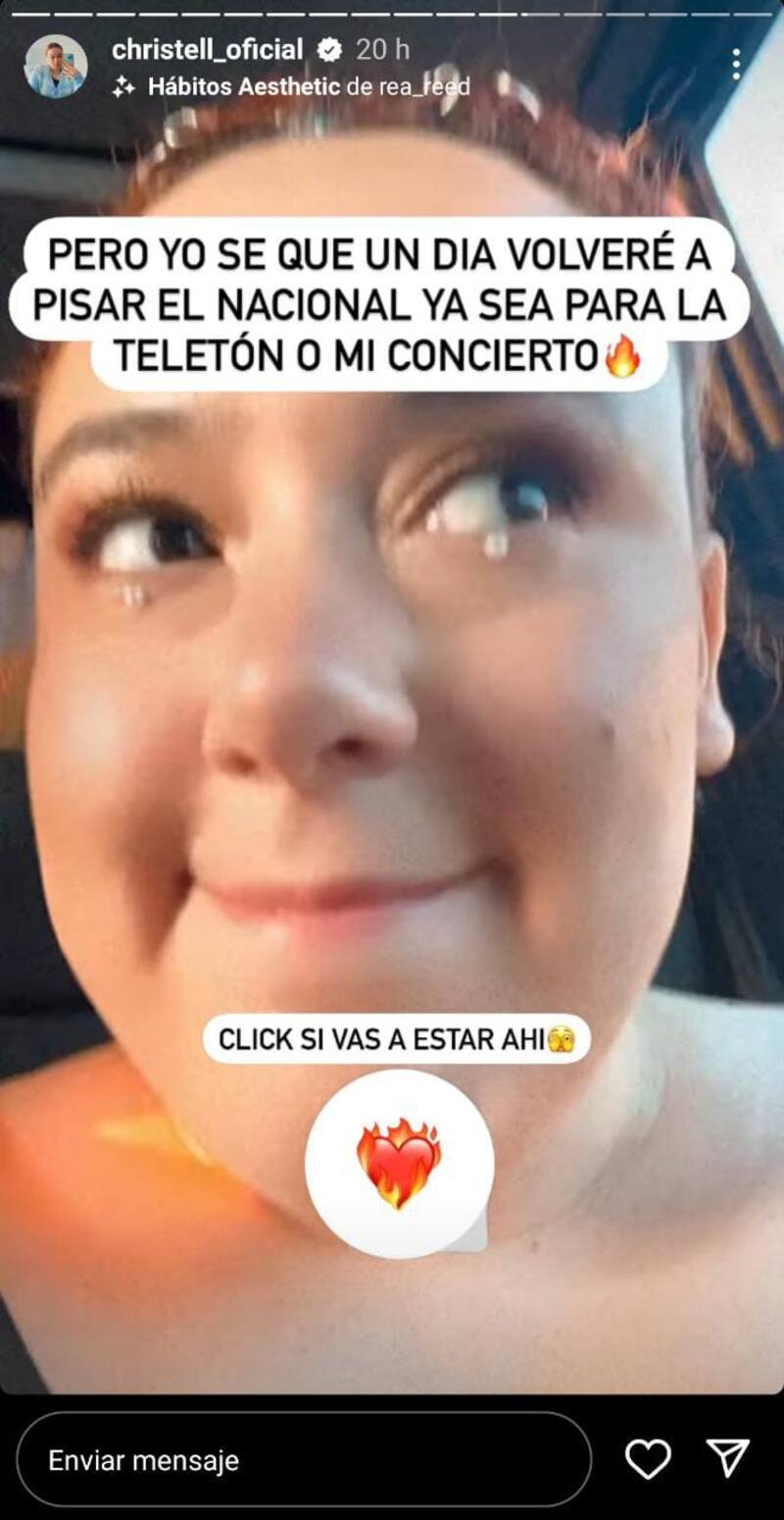 “Pero yo sé que un día volveré a pisar el Nacional, ya sea para la Teletón o mi concierto”, agregó recibiendo el apoyo de sus seguidores.