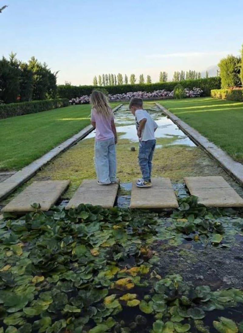 Pero eso no es todo, pues el recinto también cuenta con gallinas y un pavo real, además de un puente construido sobre un mini estanque de agua, en el que sus pequeños aprovecharon de hacer una caminata.