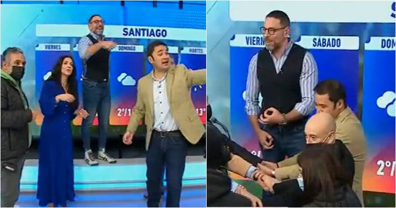 En eso, la conductora Karla Constant le sugirió hacer un lift (levantamiento) mientras ella, el meteorólogo y Roberto Saa lo sostenían, aunque Neme se negó, argumentando que pesaba 93 kilos y, por lo tanto, no lograrían mantenerlo en el aire.