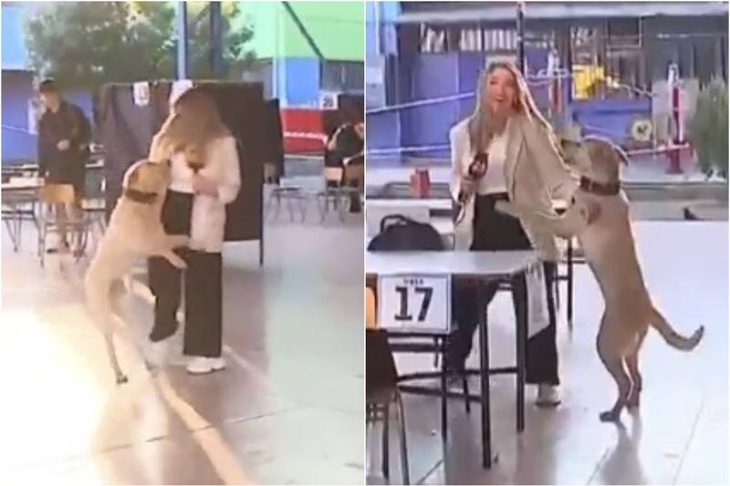 Después de unos momentos, el perrito se calmó y Sofía Carrizo pudo conversar con los vocales de mesa que se preparaban para comenzar con una nueva jornada de elecciones.