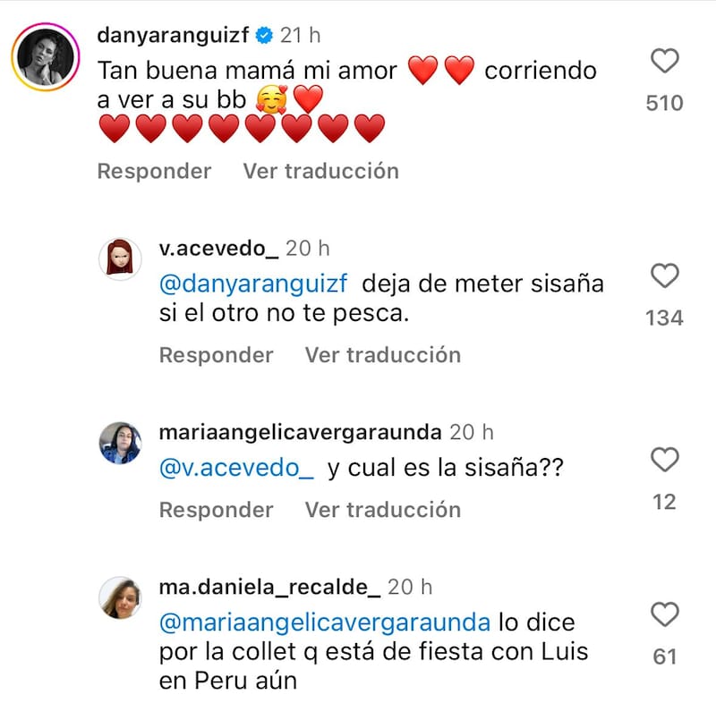 “Deja de meter cizaña, si el otro no te pesca”, le escribieron de vuelta a la ex de Luis Mateucci, quien en los mismos comentarios revelaron que andaría de fiesta con la brasuca en Perú.