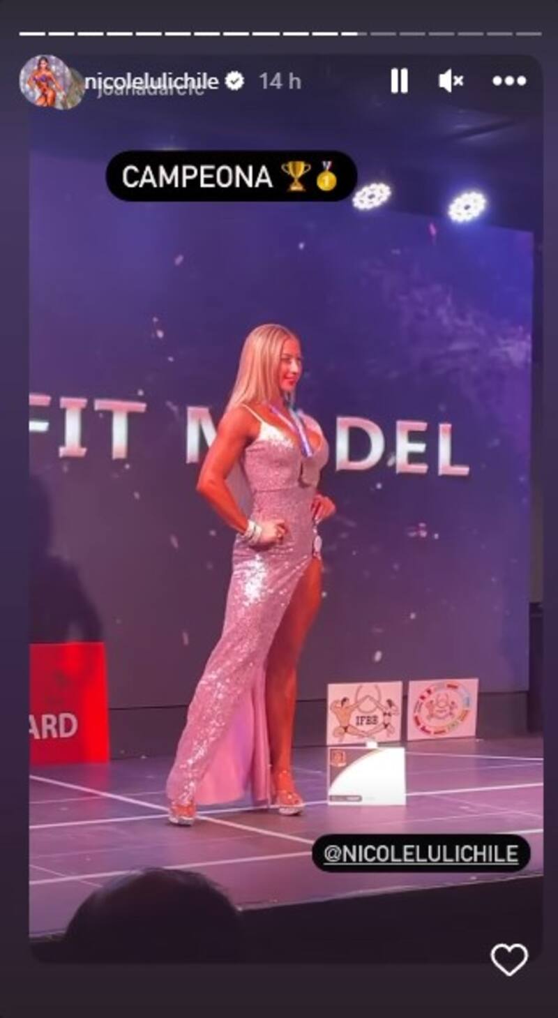 “IFBB Internacional noche de Campeones. Muy Feliz con mi resultado! Cuando hacemos las cosas con pasión y de verdad todo fluye! Orgullosa de mi constancia, dedicación, pasión y por ser tan disciplinada y lograr todo lo que me propongo. Campeona. PRIMER LUGAR FIT MODEL”, añadió en su cuenta de Instagram compartiendo el momento en que anuncian su triunfo y posteando fotos con su medalla, llenándose de mensajes de felicitaciones.