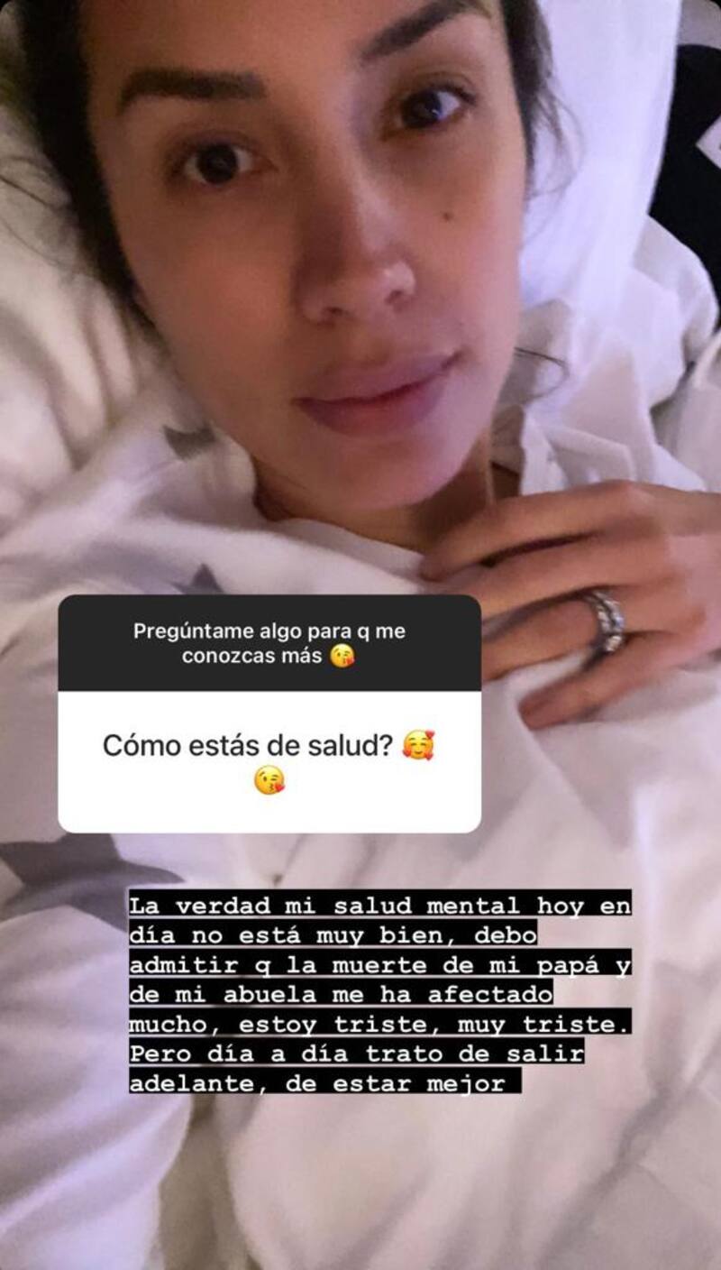 "La verdad mi salud mental hoy en día no está muy bien. Debo admitir que la muerte de mi papá y de mi abuela me ha afectado mucho, estoy triste, muy triste", confesó, añadiendo que "día a día trato de salir adelante, de estar mejor".