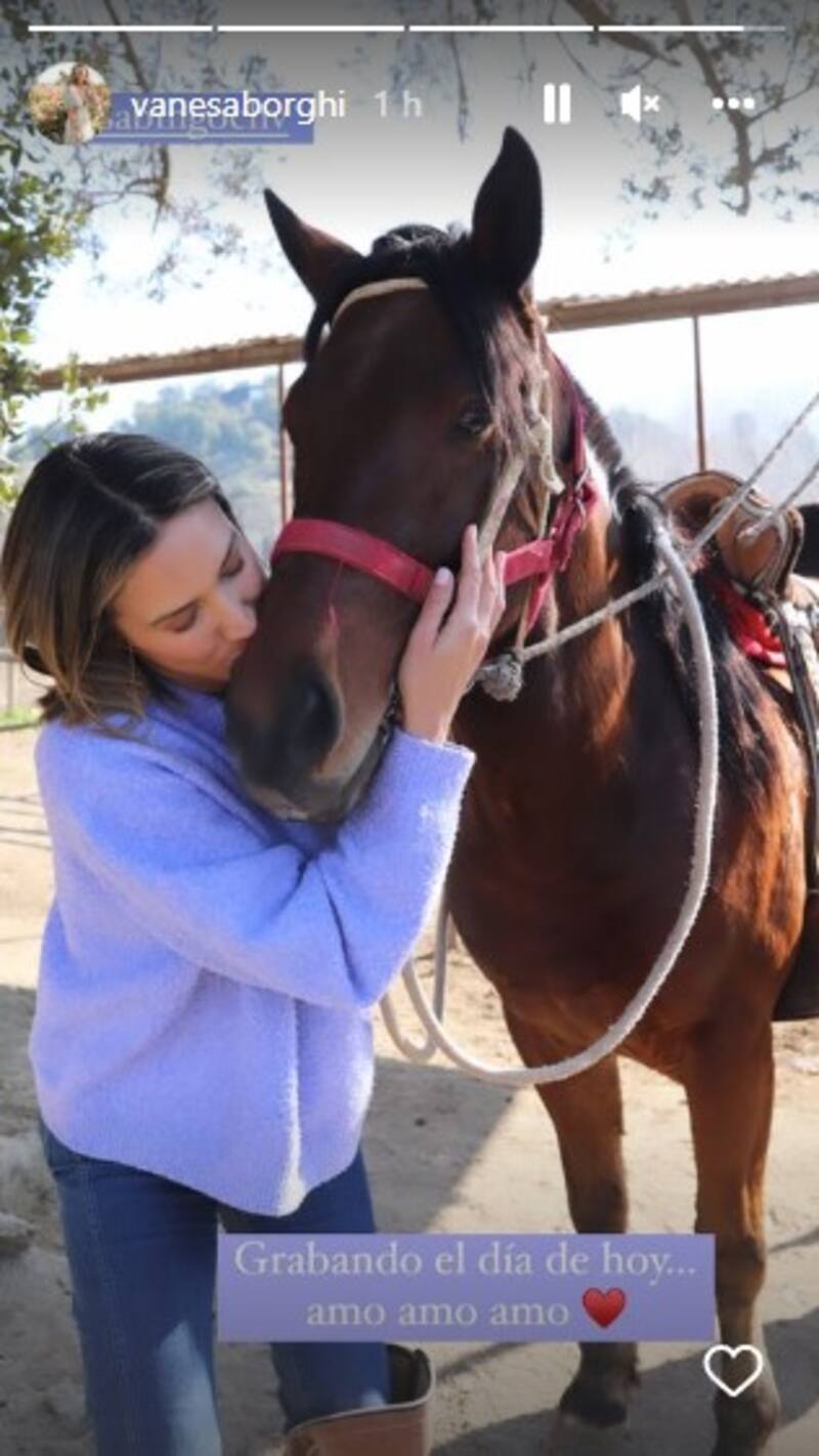 “Grabando el día de hoy… amo, amo, amo”, compartió en otro registro junto al caballo dejando en evidencia su emoción por el especial proyecto.