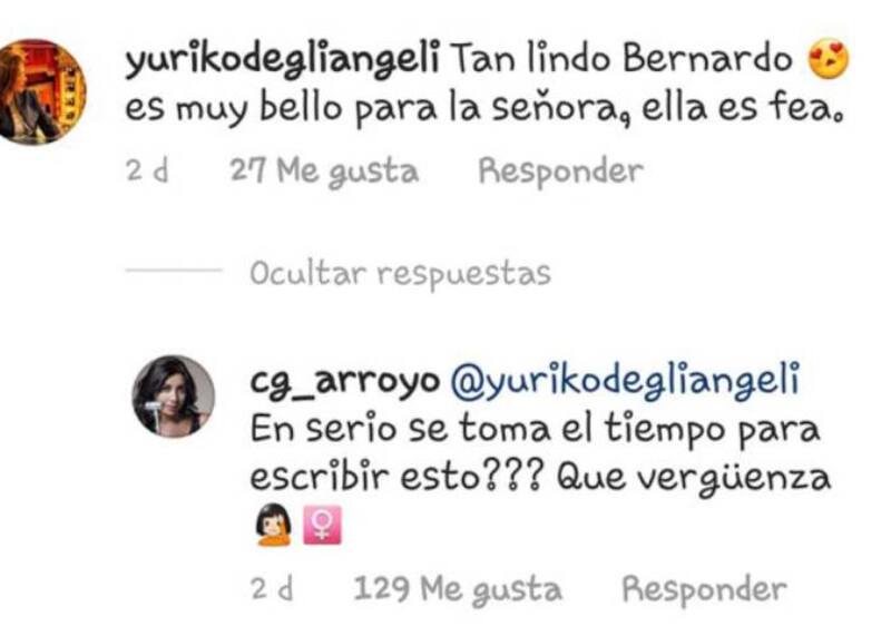 "En serio se toma el tiempo para escribir esto??? Qué Vergüenza", y "viendo sus fsotos me doy cuenta que jamás estaré a la altura de su belleza", fueron algunas de las respuestas con las que reaccionó el rostro de TVN.