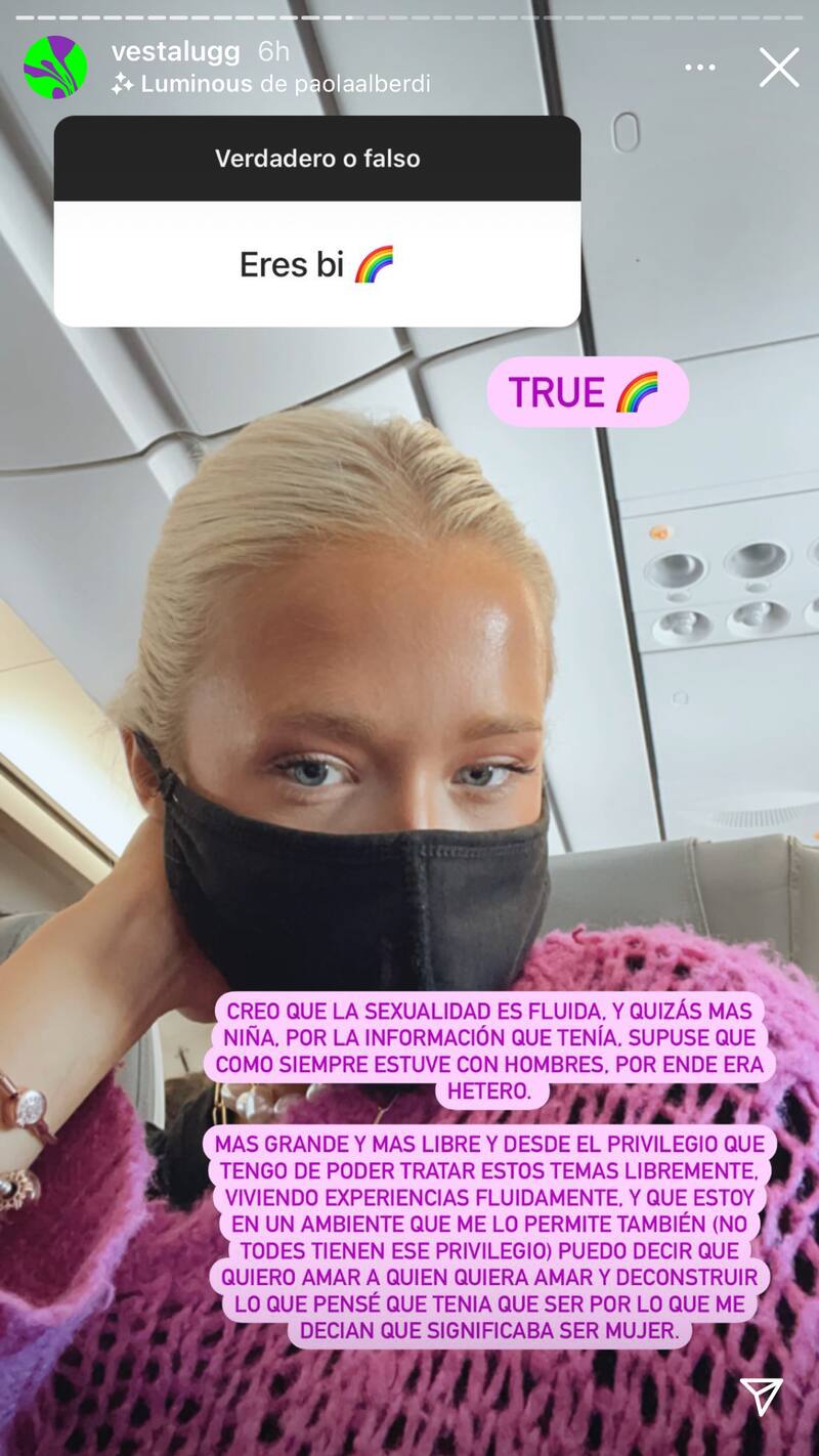A través de sus historias en Instagram, la influencer afirmó que es bisexual. "Creo que la sexualidad es fluida. Y quizás más niña, por la información que tenía, supuse que como siempre estuve con hombres, por ende era hetero", contestó.