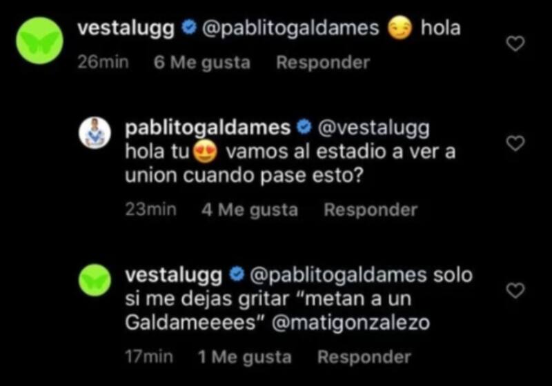 La comentada invitación de Pablo Galdames a Vesta Lugg en Instagram