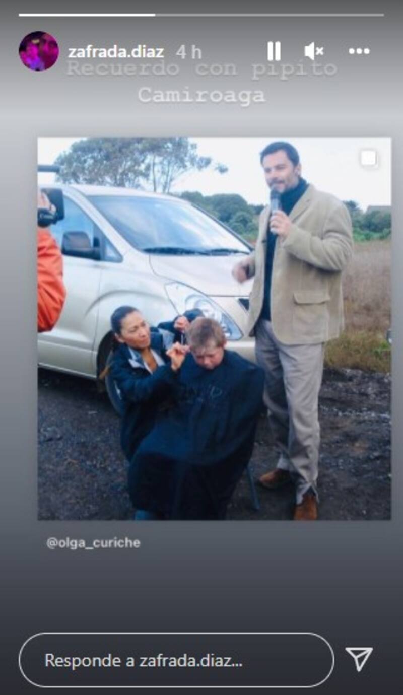 “Recuerdo con Pipito Camiroaga”, escribió sobre la foto donde aparece sentado mientras le cortan el pelo, acompañado por el “Halcón de Chicureo” quien se convirtió en una especie de amigo.