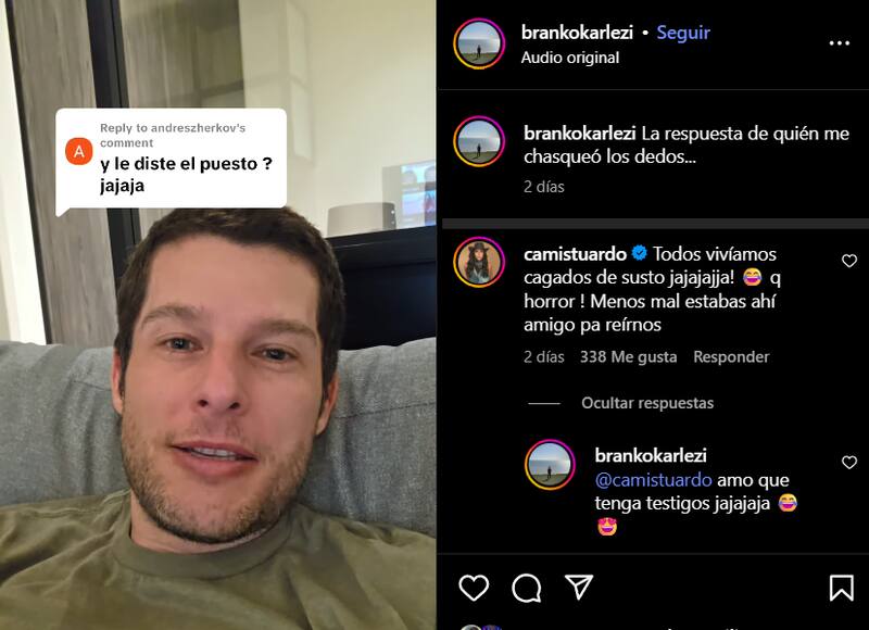“Todos vivíamos cagados de susto jajajajja! Qué horror ! Menos mal estabas ahí, amigo, pa reírnos”, aseguró la comunicadora en la cuenta de Instagram de Branko, quien también replicó el mensaje.