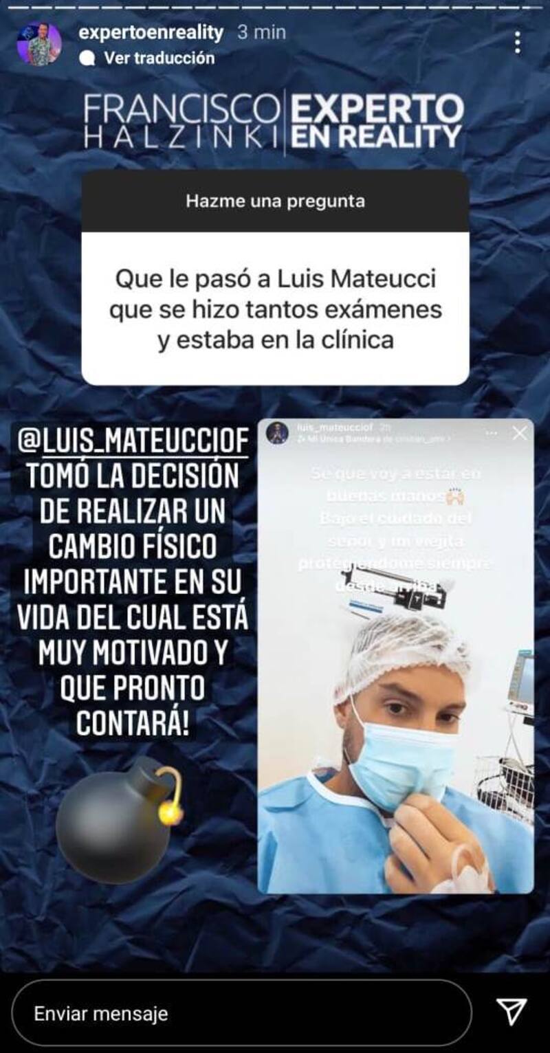 El ex chico reality Luis Mateucci preocupó a sus seguidores tras compartir registros al interior de una clínica.