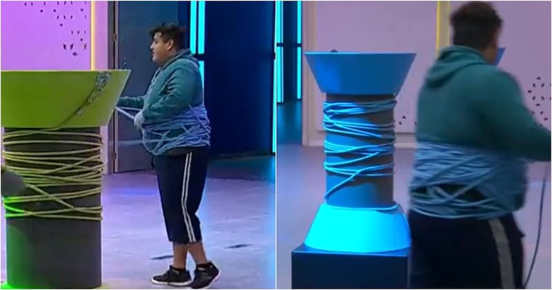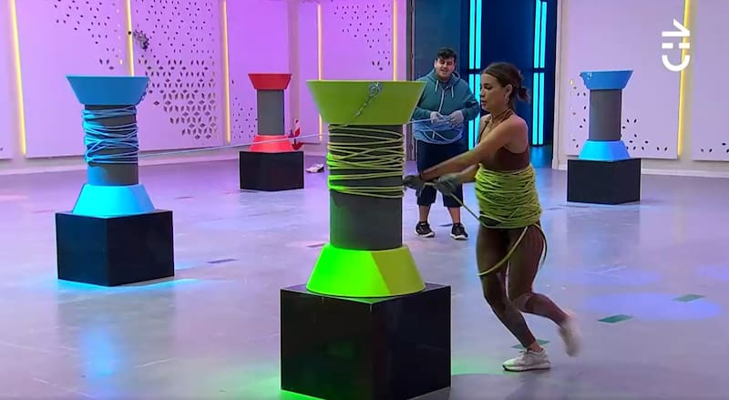 La competencia de esta semana constaba en utilizar el cuerpo para deshilar y volver a hilar un carrete. Quien lo consiguiera primero, sería el ganador.