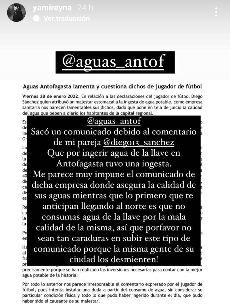 Todo comenzó cuando Diego “Mono” Sánchez, el nuevo jugador de Deportes Antofagasta y que se encuentra en dicha ciudad, publicó una historia de Instagram alegando que haber bebido agua directamente de la llave le provocó molestias estomacales.