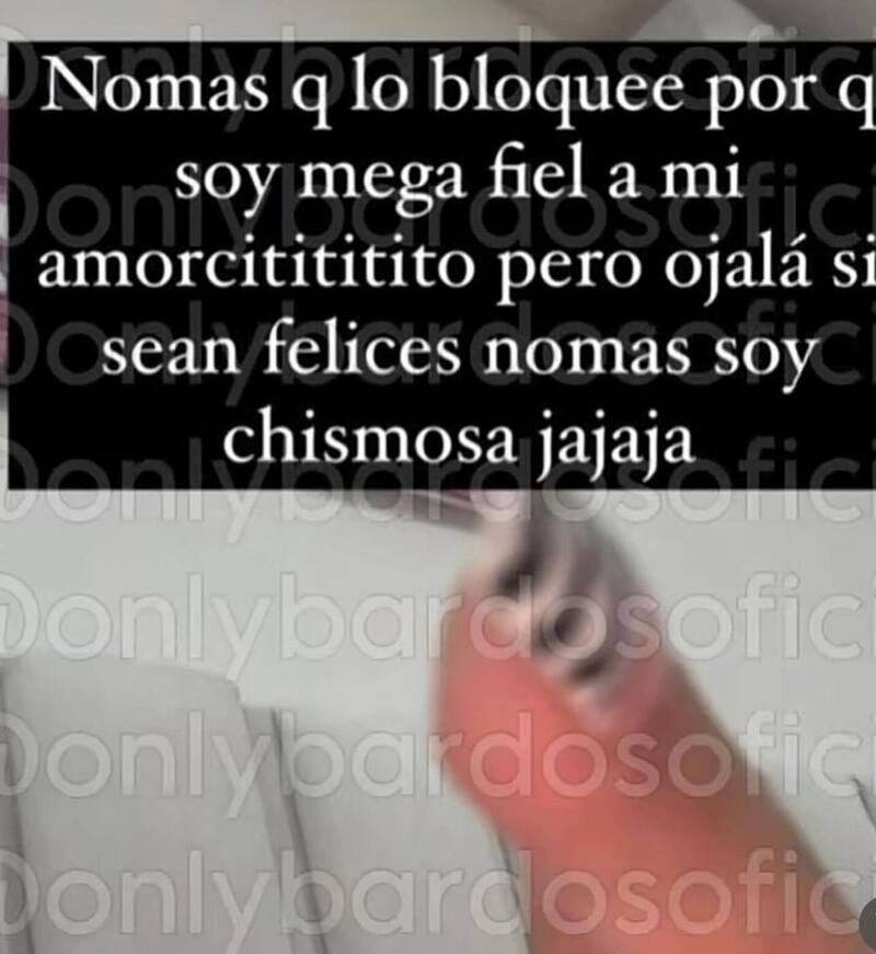 “Nomás que lo bloquee porque soy mega fiel a mi amorcito, pero ojalá si sean felices nomás. Soy chismosa”, agregaba el mensaje.