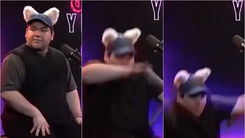 Mientras conversaba con “Pincopya”, exparticipante de Gran Hermano, el influencer terminó en el suelo tras un problema con su silla.