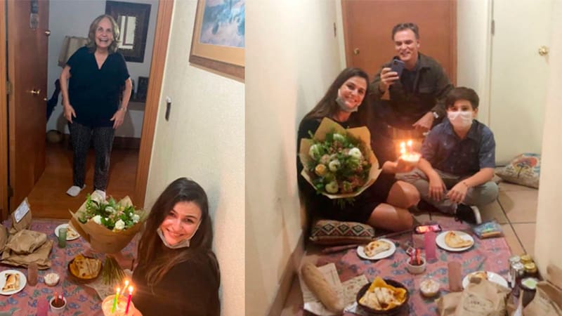 Amaro Gómez-Pablos celebró el cumpleaños de su madre con picnic en el pasillo frente a su departamento para respetar la distancia social
