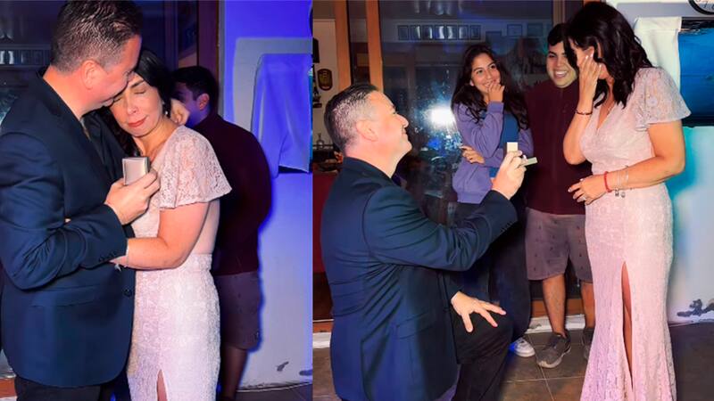 De rodillas y frente a invitados como Javier Macaya y Kenita Larraín, el periodista Christian Pino le pidió matrimonio a la ex ministra Karla Rubilar
