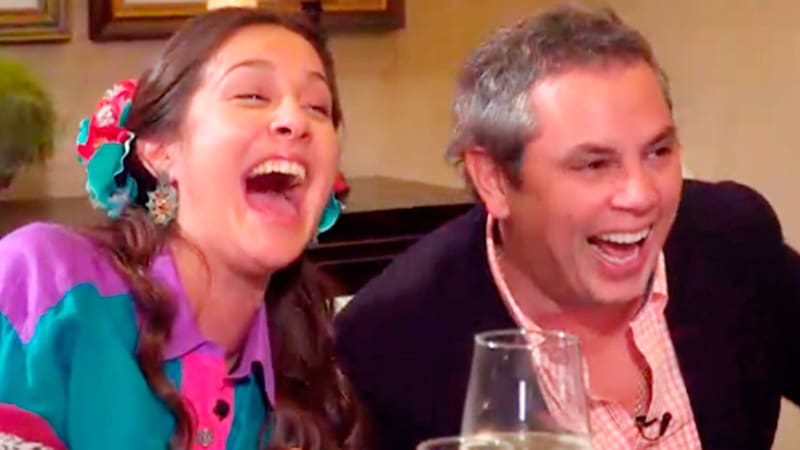 Rosenthal le explicó a Sergio Freire que "con mi papá hacemos terapia de risa. Entonces, un día tú tienes que mirar a una persona, mirar a ojos..." La joven se quedó mirando fijo al comediante y al segundo ya estaba nuevamente riendo a carcajadas -MIRE AQUI EL VIDEO. PARTE 2. MINUTO 17-.