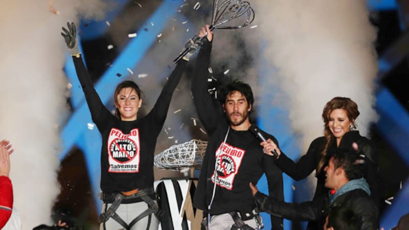 Los triunfadores hicieron de su hazaña una protesta. Sobre el podio de la premiación, la pareja lució poleras con sendos mensajes en contra de la construcción del proyecto hidroeléctrico Alto Maipo, a cargo del Grupo Luksic. Además, Pedro instaló a sus espaldas un tremendo telón de protesta y reclamó directamente contra la familia Luksic.